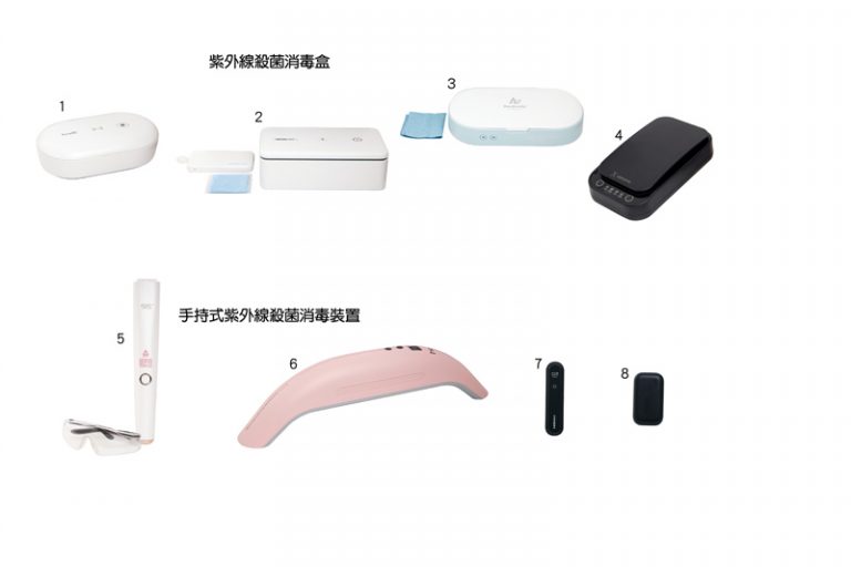 測試了8款便攜紫外線(UVC)殺菌消毒器,包括4款消毒盒及4款手持式消毒裝置,聲稱來源地為中國或韓國,售價由$220至$1,480不等,測試結果顯示全部樣本的紫外線的波長皆在UVC的波長範圍內,並與其聲稱吻合。