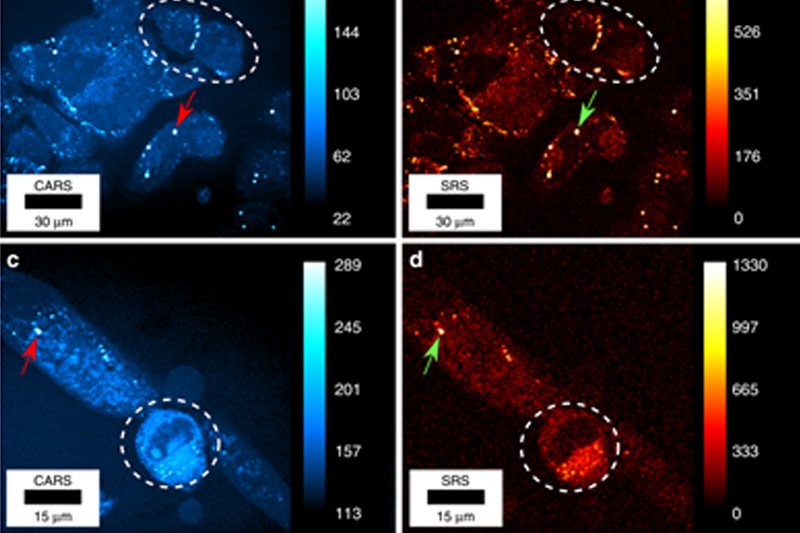現時研究人員觀察腫瘤的生長模式,和藥物例如標靶藥如何影響不同類型的細胞,過程需使用螢光物質標記細胞樣本,從而觀察細胞分子對藥物所產生的反應,然而螢光物質或會對細胞分子造成傷害或干擾,也通常不適用於人體活組織研究。香港大學與德國比勒費爾德大學近期合作,利用光纖技術研製嶄新的激光顯微鏡。