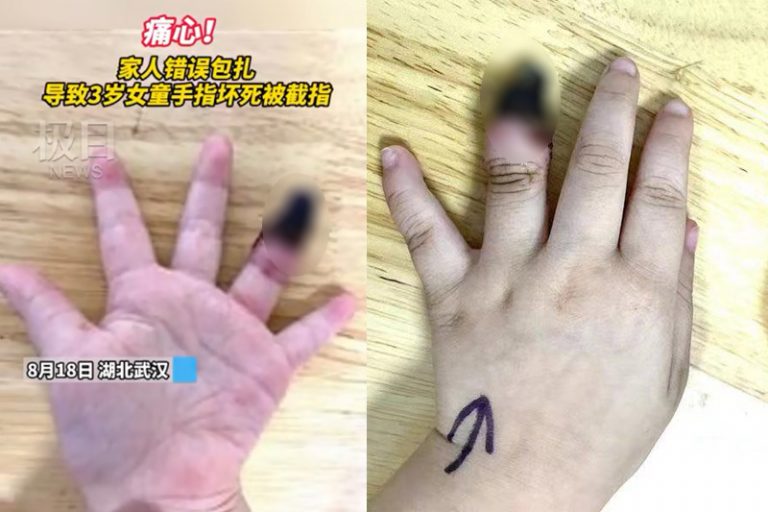 綜合內地媒體報道,該名3歲女童歡歡(化名)家住湖北省武漢市的蔡甸,大約在一個月前,她獨自在家玩耍,期間意外弄傷左手的無名指,及後家人把她送到醫院接受治理並包紮傷口。