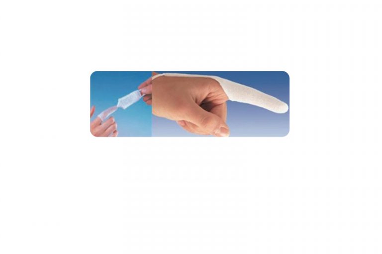 醫療輔助隊指,網狀管形紗布繃帶由彈性尼龍絲編織而成,呈圓桶形,幾乎適用於全身各個部位的包紮,並且可用以固定覆蓋傷口的敷料。網狀繃帶透氣性強,不易從皮膚上滑落,特別適用於普通繃帶不易固定的部位,如會陰部、關節部位和兒童的包紮等[2]。