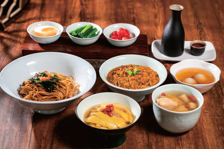 融合矜貴食材與細膩技藝的焦點菜式——「蟹肉蛋白琵琶燕」,大廚一雙巧手將頂級印尼燕窩、紅花蟹肉、蛋白做成琵琶的優美形態,質感軟滑,蛋白清香中滲透蟹肉鮮甜,風味淡雅卻充滿層次。經典的「蟹肉桂花炒蝦絲」一上桌即香氣撲鼻,雞蛋炒得乾身如粒粒桂花,蛋香、海蝦鮮味齊併發,令味蕾得到驚喜!