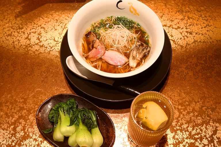 濃郁鮮美的高湯則以鴿肉配搭薑、蒜及多種蔬菜燉煮超過五小時,並加入由三款魚乾熬製的魚湯,增添香氣與口感層次,湯頭味道清澈醇香、濃而不膩。最後以舞菇及京蔥作點綴,令人回味無窮。客人更可點選套餐(HK$158),配小棠菜及自選指定飲品,必定成為今季最受歡迎的拉麵之一。