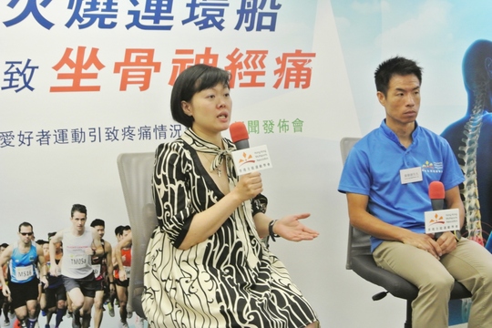 學會榮譽醫學顧問麻醉科專科醫生李靜芬(上圖左)指出,痛是身體發出的警號,如果忍痛繼續練習或比賽,身體不期然會遷就疼痛部位,而扭曲的姿勢卻會導致其他肌肉或關節負荷加重,在姿勢不正確的情況下,很容易令傷患疼痛蔓延至其他部位。
