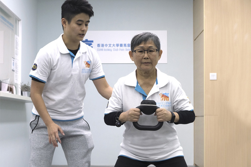 受膝關節痛困擾多年的李婆婆,本來已排期在公立醫院進行置換膝關節手術。她在半年前開始參與計劃,經過痛症緩解運動訓練後,其膝痛情況得以舒緩,行動能力亦大為改善。中大醫學院賽馬會公共衞生及基層醫療學院副院長黃仰山教授補充:「慢性痛症患者往往單靠藥物處理痛患,容易忽視因為長期痛楚及行動不便問題引起的負面情緒。事實上,患者的心理及生理問題相互影響,因此他們需要多方位的治療方案,除藥物外,亦須配合飲食建議和監督、運動、心理及行為治療。」