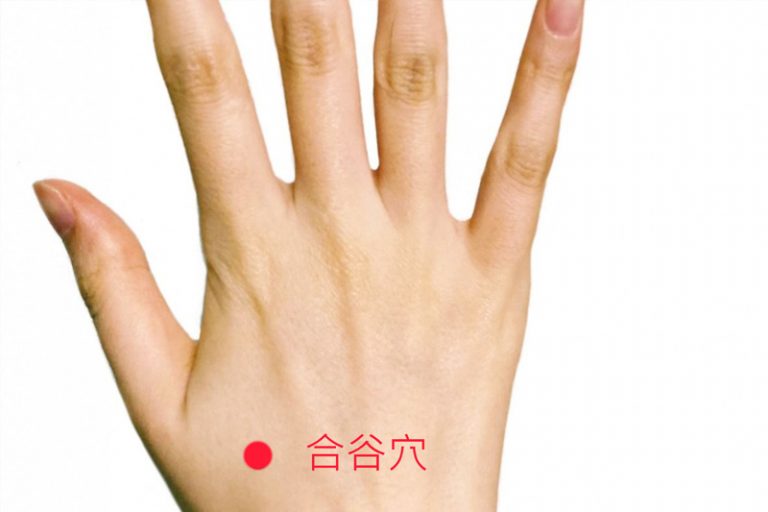 又名「虎口」,是治痛的要穴,屬手陽明大腸經上的穴道,可治療臉部五官的痛症,如頭痛、目赤腫痛、牙痛、咽喉腫痛等。