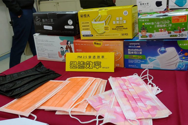 台灣消基會於2020年12月期間,於台北、新北市的大賣場、連鎖藥粧店及電商平台購買共20件口罩樣本,當中包括19款為醫療用口罩,以及1款為一般拋棄式口罩,每片單價介乎台幣3.4至14元(約1至4港元),產自分別有內地、台灣及菲律賓等地。