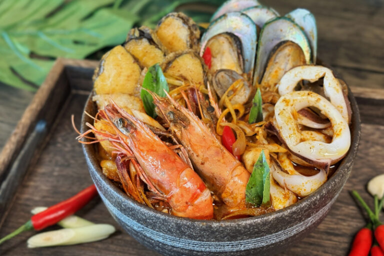 自助餐更設有現場即製專櫃,包括:入口即化的煎鴨肝伴黑松露汁及濃郁鮮甜的生滾龍蝦湯。此外,廚師團隊以精湛的廚藝呈獻一系列「鮮味」熱葷,包括:避風塘軟殼蟹,以經典的港式避風塘製作,每一口都能感受到外脆内嫩的口感及惹味豐富的香料滋味;日式清酒慢煮原隻鮑魚,鮑魚在清酒的溫潤慢煮下,充分吸收了湯汁的鮮美與清酒的淡雅香氣,滋味無窮;燉煮到恰到好處的花膠紅燒肉,軟糯入味,滋補養顏。