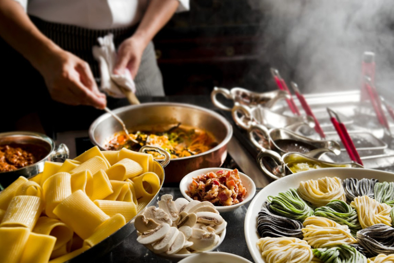 其他即煮烹調站還有白酒煮青口及香草牛油白蘆筍,令人食指大動;澳洲牛肋骨及烤羊腿即叫即切;龍蝦龍蒿奄列、牛油果水煮蛋農夫包等由專人奉上;客人亦可自選一款滋味主菜,有意式烤乳豬、爐烤海鱸魚、法式芝士忌廉焗大蝦、地中海烤意大利青瓜茄子等可供選擇。甜品區擺放著一系列特色糕餅,包括意式芝士脆卷、開心果千層酥、巴斯克芝士蛋糕、檸檬橄欖蛋糕、意大利芝士蛋糕、聖地牙哥杏仁蛋糕、紅莓忌廉海綿蛋糕,帶來甜蜜驚喜。