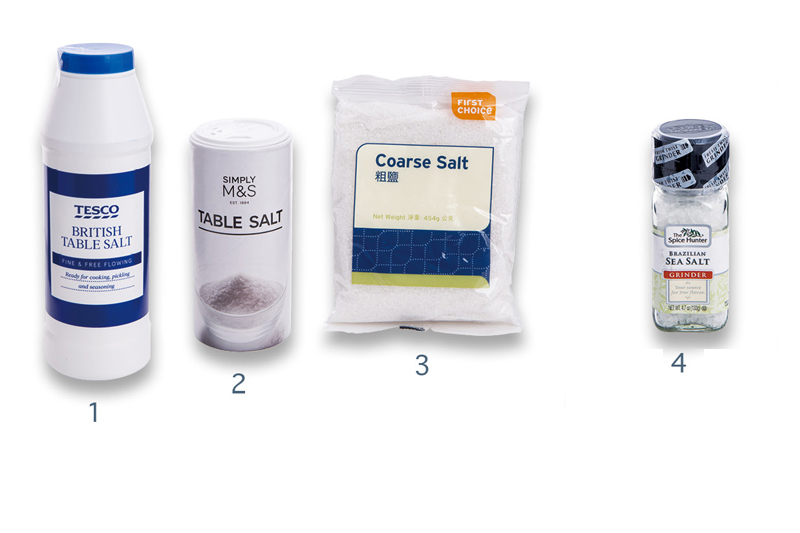 在各食鹽類別中,以海鹽樣本的售價差異最大,價格最低的「第一牌」然粗海鹽($2.6)與最高的「Maldon」有機海鹽($63.5)的樣本相距逾23倍,但總評同獲最高5分。「Tesco」餐桌鹽、「Simply M&S」餐桌鹽、「首選牌」粗鹽這3款價錢在$15或以下的餐桌鹽/烹調用鹽組別,總評同獲5分,在金屬雜質、微塑膠和塑化劑的檢測中表現不俗,比起售價$440兼總評4分的「The Original Himalayan Crystal Salt」喜馬拉雅山水晶幼鹽略勝一籌。