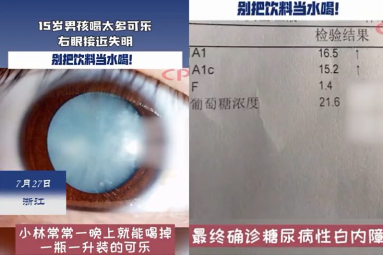 炎炎夏日,來上一杯沁涼的含糖飲料絕對是消暑的珍寶,然而還是適可宜止!有一名15歲少年喜愛飲可樂,甚至每天把飲料當水喝,結果導致視力受損,求醫時始發現糖尿病併發「糖尿病性白內障」,右眼瞳孔發白,視力嚴重下降接近失明。