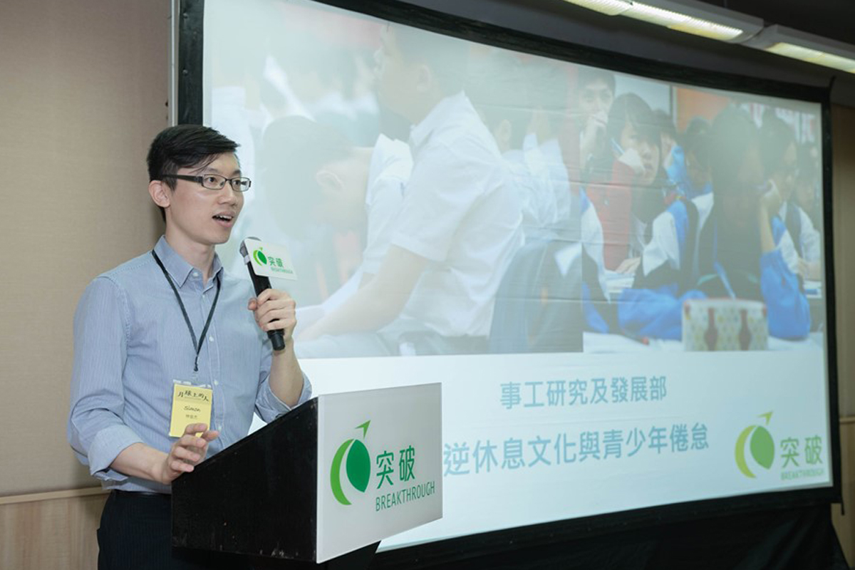 「突破」於去年10月至12月,進行名為「『逆休息』文化與青少年倦怠」研究,以街頭訪問形式,成功訪問了1221名10至29歲青少年,平均年齡為18.5歲,53%為中學生。受訪者平均每日睡6.6小時,時數比美國國家睡眠基金會的建議少2小時。研究結果又顯示部分受訪青少年有倦怠傾向,若以5分為最嚴重,受訪者分數達2.9分。