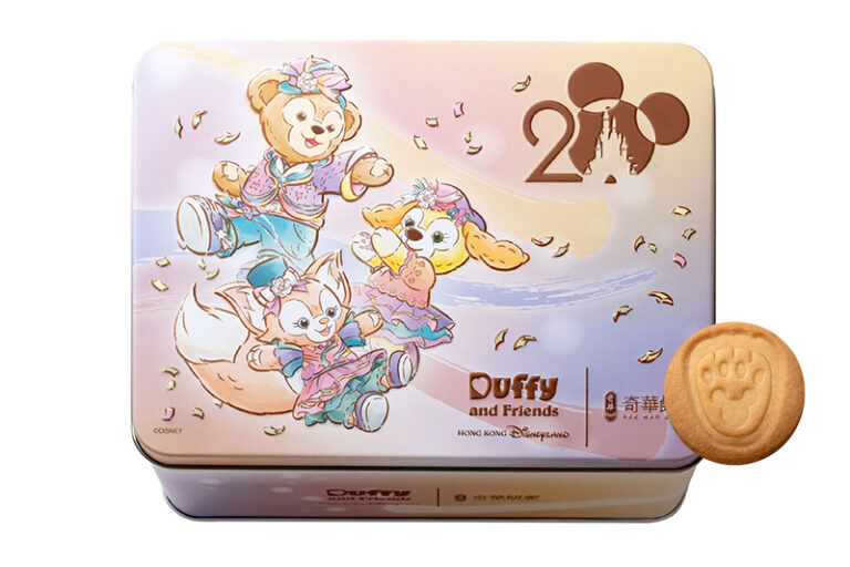 「20周年奇妙派對Duffy與好友奇華什錦小食禮盒」內含牛油蛋卷、朱古力蛋卷和牛油曲奇(HK$199)
