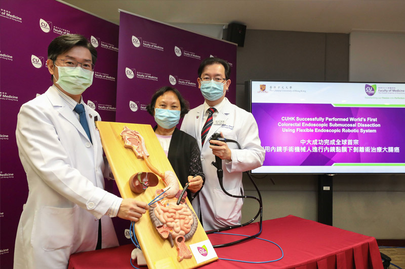 大腸癌是香港最常見的癌症,在本港致命癌症中排第二位。治療方案大致根據不同病期擬訂,早期大腸癌患者多數以傳統手術或內鏡切除手術進行治療。中大近日公布,成功完成全球首宗利用內鏡手術機械人進行內鏡黏膜下剝離術(ESD手術)治療大腸癌。與微創手術相比,ESD手術是一種更先進的微創內鏡介入治療方式,用於醫治早期的消化道癌症。