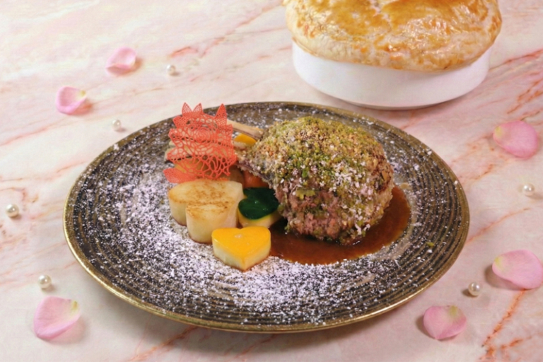 在充滿愛意的季節裡,與愛侶相擁於浪漫的氛圍中,享受一頓浪漫的情人節晚宴。8度海逸酒店特別推出「甜蜜愛意‧情人節浪漫晚宴」,經酒店eShop預訂更可享9折,折後兩位只需HK$1,069.2起。邀請您與伴侶共度甜蜜時光,享受一場愛意滿滿的情人節晚宴。酒店行政總廚精心打造的情人節浪漫四道菜晚宴,先以清新的帶子刺身芒果沙律驚豔開場,匯聚鮮甜帶子與完美熟成芒果,鮮爽與馥郁的對比瞬間喚醒味蕾,為接下來的盛宴完美定調;緊接登場的是酥皮焗蟹肉濃湯,金黃酥脆的千層外皮之下,包裹著以鮮蟹肉與濃湯慢火細燉而成的極致甘醇,一勺破開酥皮的瞬間,香氣四溢。
