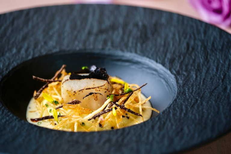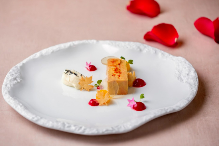法國餐廳 CulinArt 1862,於即將到來的二月佳節,主廚團隊以匠心廚藝結合環保永續理念,於2月13日及14日推出六道菜的情人節嚐味套餐(兩位 HK$2,588 + 10%, 人均$1,294+10%)。饗宴由西西里紅蝦他他配 Kristal 魚子醬揭開序幕,緊接是色澤如紅玫瑰般迷人的紅菜頭及氈酒醃製三文魚。接下來是經典的法式鵝肝凍批,主廚巧妙地搭配了清爽的青蘋果與芹菜根,以酸甜與爽脆平衡鵝肝的豐腴油潤。再來一道北海道帶子配黑松露,帶子鮮甜彈牙,配上綿密的松露薯仔慕斯與輕盈的松露泡沫,香氣馥郁迷人。