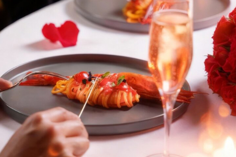 馬哥孛羅酒店Cucina 於維港美景映襯下奉上精緻意大利情人節晚宴,頭盤為普利亞紅蝦他他、利古里亞油、檸檬、粉紅醬、頂級魚子醬,海洋鮮味與柑橘清香交織,隨後送上地中海珍寶紅蝦扁意粉、西西里車厘茄醬,齒頰留香。主菜可選甘香細膩的香焗智利鱸魚柳、香草紅菜頭、鮮蜆、藏紅花汁或肉嫩多汁的烤和牛牛柳、藍薯蓉、寶塔西蘭花、紅桑莓汁,於維港布幕下共享溫馨時刻。