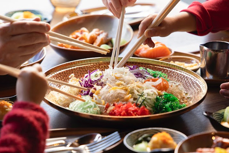 莆田餐廳精心呈獻的「風生水起・煙三文魚撈起」,承傳這一美好傳統。以鮮美的煙燻三文魚為主料,佐以秘製酸甜醬汁,並搭配寓意吉祥的各式鮮蔬:茶瓜絲、喬頭絲、瓜英絲、甜酥紅薑絲、唐山白薑絲、糖冬瓜絲、百花桔餅絲等。整道菜色彩絢麗,口感層次豐富,滿足了味蕾外,更完美承載了對圓滿新年的所有美好祝願。無論是堂食共享熱烈氛圍,還是外帶回家與親人同樂,都能讓您輕鬆將這份濃厚的年味與福氣帶回家。