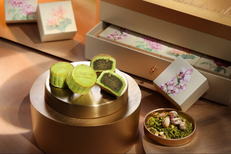 此外,茗悅開心果二重奏(六件裝)(HK$418)茗悅開心果二重奏禮盒,蘊含精緻風味。品嚐迷你開心果脆粒月餅,開心果的濃郁堅果香與令人滿足的脆口感相融,呈現新穎而均衡的滋味。搭配迷你開心果蔓越莓月餅,將開心果的醇厚口感與蔓越莓的鮮活酸甜完美結合,帶來清新驚喜。