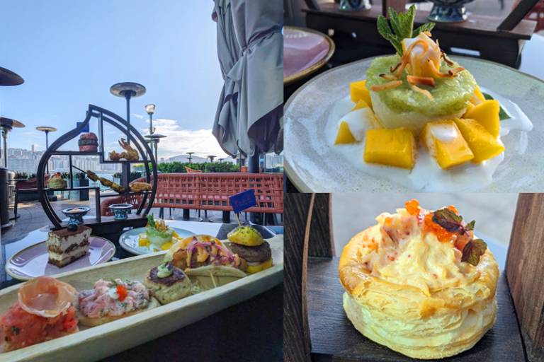 偏好亞洲風味的客人,則可選擇O’Thai的泰式下午茶套餐,包括多款以辛辣調味及鹹香口感為主的美點:塞滿鮮嫩龍蝦肉的酥香迷你龍蝦酥盒;炸得香脆的香辣軟殼蟹;香煎彈牙泰式蝦餅;炭燒雞肉串配搭甜鹹花生醬增添層次口味。套餐更包括獨特的Impossible植物肉迷你漢堡,配上惹味是拉差蛋黃醬;甜品則是芒果糯米飯,將新鮮的芒果結合濃郁椰香糯米,為茶點拼盤增添熱帶風情,同時平衡整體的鹹甜滋味。