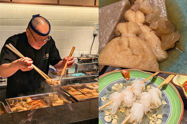 店內提供多達20多款關東煮料理,每一款都凝聚了大廚的心血:當中最受矚目的莫過於選用甜度極高、口感柔軟、被譽為「日本第一洋蔥」的淡路島洋蔥 (HK$68),經過三日浸煮後配以木魚絲及三款秘製醬汁,將這份日本名產的甜味發揮至極;鮮甜日本厚切大根 (HK$38)、昆布(HK$18)、炸牛蒡卷(HK$38)、龍頭豆腐(HK$30)等。