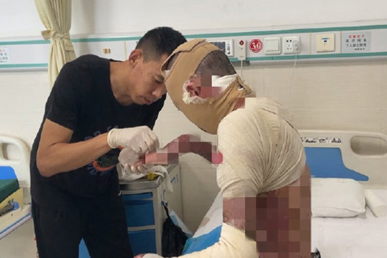 在山東省濰坊市居住的文靜(化名),於去年8月19日因意外被爆炸燒傷,當時她的家人見狀立即致電召喚救護車,將文靜送往醫院搶救。文靜媽媽心痛不已,淚流滿面。
