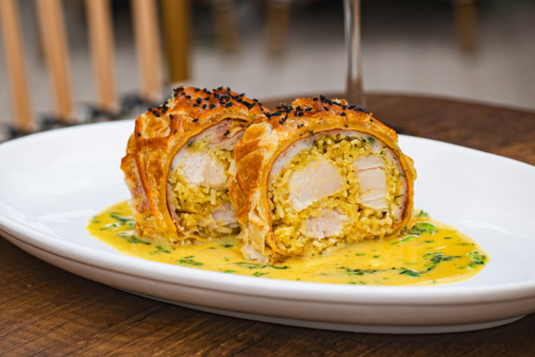 位於尖沙咀東的MOOO! Grill戶外露台花園,綠意環抱之間點綴著流行藝術元素,營造出悠閒氛圍,由午後至夜晚同樣迷人。全新秋季菜單必試燒牛肉薄餅(HK$208)以白汁、焦糖洋蔥、牛油、荷蘭醬忌廉及芒果莎莎醬入饌,風味層次豐富;而重頭戲劍魚柳威靈頓(HK$268),配以咖喱椰香飯,佐以咖喱牛油汁,一道菜盡顯溫暖濃厚風味。