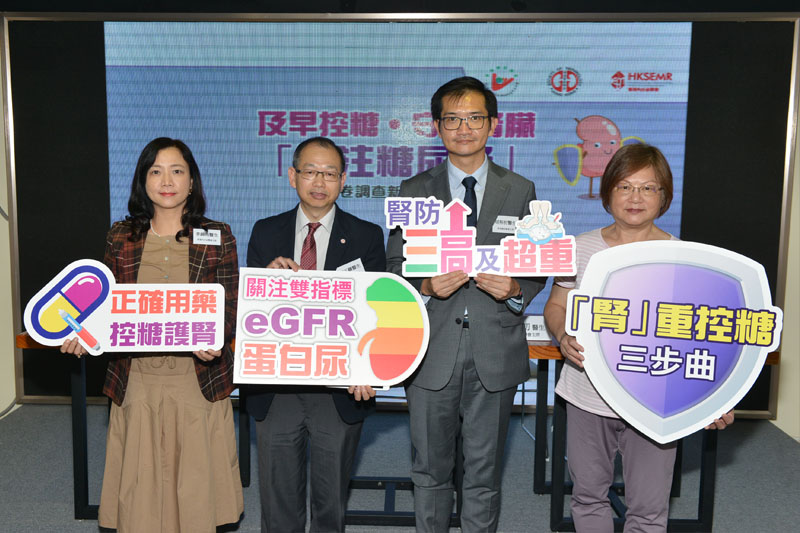 目前本港約有70多萬人患有糖尿病,而每6位糖尿病患者便有1位出現腎功能急劇下降,約半數需要洗腎和腎臟移植的末期腎衰竭新症均由糖尿病所引致。香港糖尿聯會、香港腎科學會及香港內分泌學會,於今年5月進行問卷調查及腎功能檢測活動,成功獲得303份有效樣本,發現受訪患者的認知及預防意識薄弱,普遍三高及體重控制欠佳,三分一腎功能或已達到中等至嚴重程度的損耗。