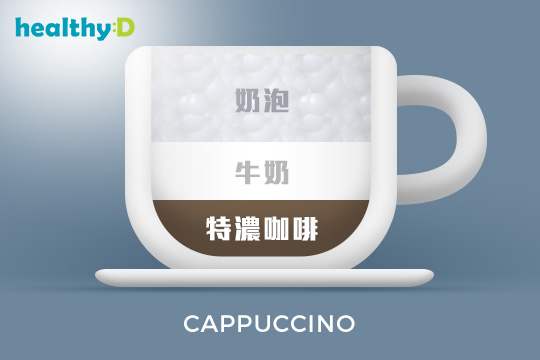 頭號大熱門泡沫咖啡,它的成分包含濃縮咖啡、些許熱牛奶和大量奶泡。別以為加奶後它味道更溫和,就無殺傷力,其實它的咖啡因含量等於Double Shot的Espresso!