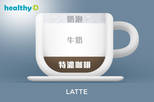 另一大熱門牛奶咖啡,它的製法是把特濃咖啡倒入熱牛奶中,再加少量奶泡,易入口,當你以為自己飲牛奶多過飲啡,其實它咖啡因含量也不少,一杯Latte絕對係貨真價實的咖啡,而並非「牛奶飲品」 。