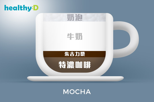 朱古力咖啡即是牛奶咖啡加朱古力,兩者咖啡因含量相若。一般會先加朱古力漿和可可粉進特濃咖啡,攪拌後再倒入牛奶和奶泡,有些店會放一塊巧克力來提升口感,一般熱量和糖分也會更高!怕肥慎食!