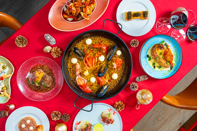La Paloma 已瀰漫著濃厚的聖誕氣氛!於12月25日至28日可享用豐盛的午市套餐(每位HK$398)。盛宴以火腿冷盤及西班牙白毛豬,以及一道現代風味演繹的吞拿魚他他揭開序幕。主菜作為亮點,賓客可選擇招牌慢煮烤乳豬,或經典的西班牙海鮮飯,亦可加配半隻龍蝦昇華體驗。最後,以經典的巴斯克焦香芝士蛋糕甜蜜作結。聖誕夜晚更顯璀璨奪目!晚市套餐(每位HK$598)將於12月24、25、26 及 31 日供應。賓客可盡情品嚐一系列豐盛佳餚,從伊比利亞火腿開始,接著是驚豔的烤八爪魚腳、蒜香辣椒大蝦,以及奢華的香煎牛柳鵝肝二重奏。歡迎額外加點令人震撼的波士頓龍蝦飯,最後以精選西班牙聖誕甜品,為這個難忘夜晚寫下完美句點。