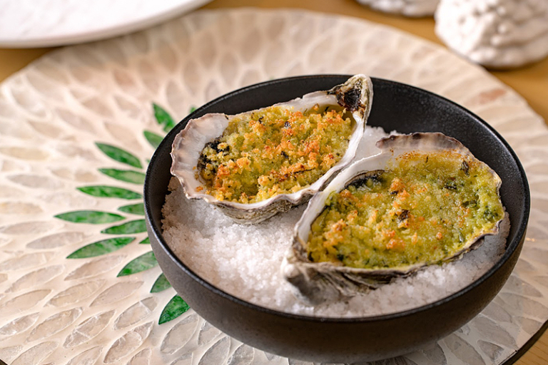 今年十二月,TANGRAM Bistro & Bar誠意呈獻法式聖誕晚宴,是次節日菜單以季節食材入饌,配合法式細膩烹調手法與柔和香氣,營造溫馨的用餐體驗。可按節奏悠然品嚐每道菜式,並配搭精心挑選的餐酒,讓味道層次更臻完整。餐序由布列塔尼焗生蠔揭開序幕,以蒜蓉及香菜牛油烘烤,口感柔滑細膩,帶出沿海地區的清新氣息。前菜則有紅菜頭醃製三文魚配布里尼小圓餅,結合檸檬清香,並經過伏特加輕醃,營造溫暖圓潤的餘韻。另一選擇為時令黑松露溏心蛋佐伊比利亞火腿,切開呈絲滑流黃,其下的玉米增添俏皮脆感,配上松露點綴,榛果香氣巧妙地交織其中。