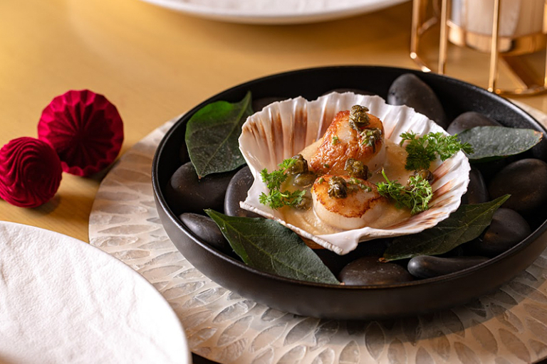 過渡至主菜前,香煎法國帶子佐以芹菜根與水瓜柳,帶來清爽脆感與明亮酸度,恰到好處地提亮整體風味。