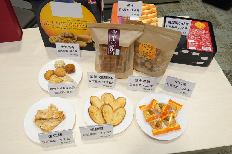 註冊營養師林思為稱,部份熱賣的油角、笑口棗、曲奇餅、蝴蝶酥、蛋卷和酥條等,都可能含有反式脂肪,每100克約有0.2-3.3克反式脂肪,進食少量已經隨時超標。她建議大眾應留意營養標籤上的反式脂肪含量,同時亦要留意是否含有「(部份)氫化植物油」或「起酥油」等成份,排列愈前代表含量愈高,對心臟的損害愈大,另外亦要留意是部份產品只標示植物油,而無註明是哪種植物油,有機會是屬於高反式脂肪或飽和脂肪的油類,更應少食為妙。