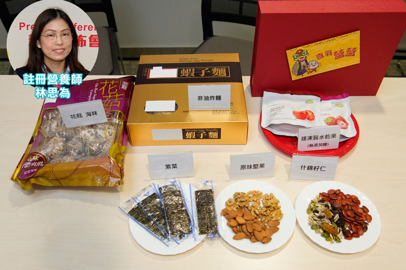她又鼓勵市民宜多揀選天然食材作替代,例如在全盒擺放無鹽果仁或瓜子、乾果、冷凍生果片、紫菜等;而健康禮品的選擇包括茶葉、新鮮水果、海味丶非油炸麵食丶乾果和無鹽果仁等,美味之餘亦有助減低心臟的負擔。