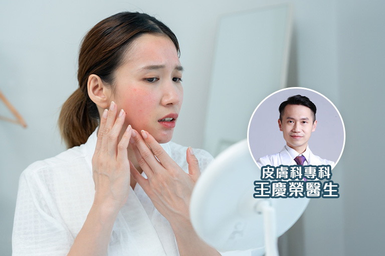 皮膚科專科王慶榮醫生指出,臉部和頸部是濕疹最令人困擾的部位之一,不僅影響外觀,更因皮膚薄、靠近眼睛,治療風險較高。「長期或不當使用外用類固醇,尤其在臉和頸,可能導致皮膚變薄、微絲血管擴張,誘發玫瑰痤瘡的病徵,甚至引發青光眼、白內障等副作用。」他提醒。
