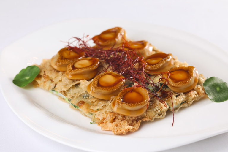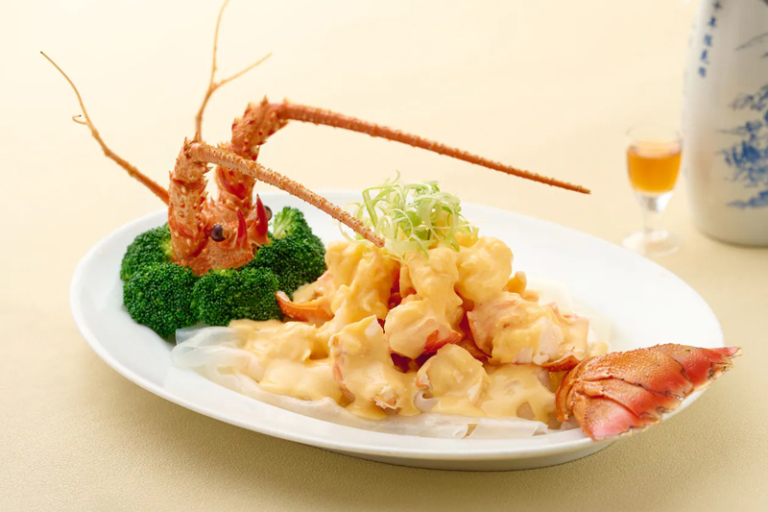 融合矜貴食材與細膩技藝的焦點菜式——「蟹肉蛋白琵琶燕」,大廚一雙巧手將頂級印尼燕窩、紅花蟹肉、蛋白做成琵琶的優美形態,質感軟滑,蛋白清香中滲透蟹肉鮮甜,風味淡雅卻充滿層次。經典的「蟹肉桂花炒蝦絲」一上桌即香氣撲鼻,雞蛋炒得乾身如粒粒桂花,蛋香、海蝦鮮味齊併發,令味蕾得到驚喜!