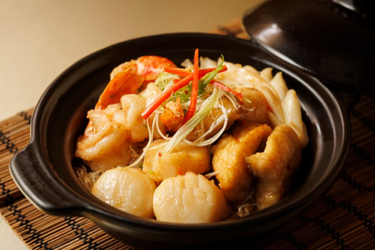 還有多款暖心之選,包括潮式北蔥羊腩煲(百樂潮州:HK$468;滿樂潮州:HK$428),選用黑草羊腩,連皮帶肉以砂鍋文火細燉三小時,配搭北蔥與炆枝竹,滋味更濃郁馥香;胡椒粉絲焗加拿大蟹煲(百樂潮州:HK$560;滿樂潮州:HK$490),則將碩大的加拿大蟹與粉絲同煮,以溫和辛香的潮州白胡椒提香,粉絲盡納海鮮精華,鮮味別具一格。當中最具象徵意義者,當屬潮式雜燴圍爐(百樂潮州及滿樂潮州:HK$498/兩位用;HK$698/四位用),集鮑魚、海參、花膠、魚鰾、鱔片、帶子及鮮魷等山海珍饈於一爐,配以匠心熬製的鮮香湯底,一眾圍爐共品,暖意融融。
