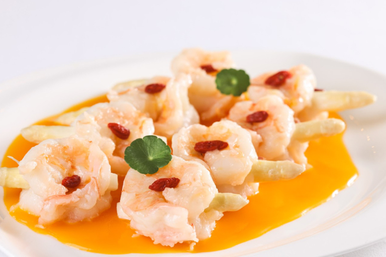 黃師傅今季匠心創作多款清爽健脾菜式,當中推介「春韭鮮鮑墨魚脆」,以精準的火候控制,將墨魚膠煎炒至香脆並加入春韭提香,頂層鋪滿鮮味彈牙的原隻鮑魚,平衡整道菜式口感。「金湯白蘆筍玉簪蝦球」是源於1970年代的高級粵菜,以手打蝦膠製成玉簪形蝦球,配以清甜白蘆筍同煮;蝦球口感爽滑彈牙,白蘆筍細嫩清甜,配上濃郁金湯,味道鮮香中,口感細緻,呈現清新的春日滋味。