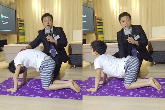 趴伏跪姿,背部拱起時下巴往內縮,維持動作大約10秒,然後將腰部下沉,並抬頭望前,同樣維持動作大約10秒。