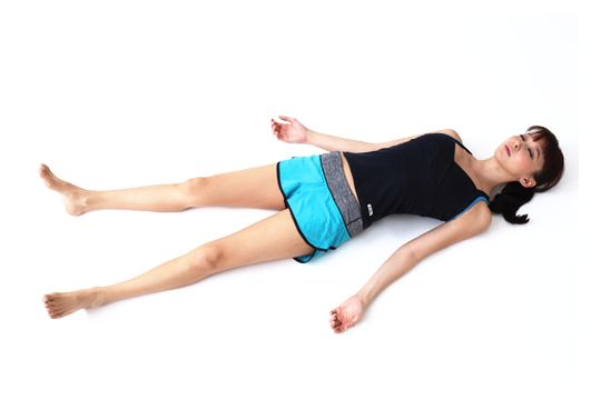 完全平躺地面,雙臂放鬆於身體兩側約45度位置。手掌向上,兩腿輕輕分開,令感覺舒適,閉上雙眼,令身體處於全然放鬆狀態,保持自然呼吸。