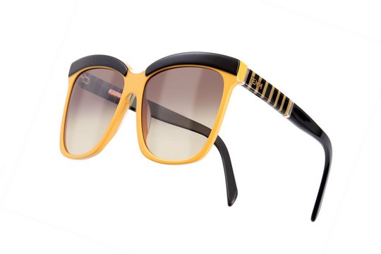 Fendi現正推出2012秋冬太陽眼鏡系列,鏡臂以粗幼相間的直紋以品牌雙F標誌色調組成,顯得份外型格﹔微微彎曲的鮮黃色鏡框眉線位置飾以黑色塑料層,形成強烈色彩對比,注目非常。