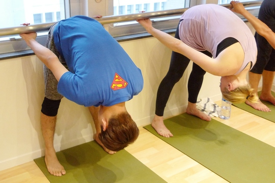 Nealy表示,初學者在芭蕾舞桿的輔助下也能安全地領略動作的做法,而且能隨意地增加難度。而Fusion Flow一系列的動作,注重強化腰背脊椎周邊和下盤肌肉的力量,對腰背負荷極重的孕媽媽和久坐人士都很有益處。
