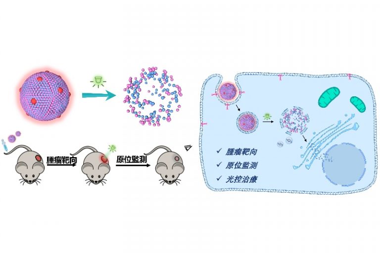 該納米顆粒對小窩蛋白(CAV-1)具有高親和力,可被CAV-1高表達的結直腸癌細胞高效攝取,並在綠光照射下分解,釋放出藥物。該過程通過螢光成像可在腫瘤處原位監測。在荷結腸瘤小鼠中,靜脈給藥及光照處理後的腫瘤生長被顯著抑制,且未見明顯副作用。