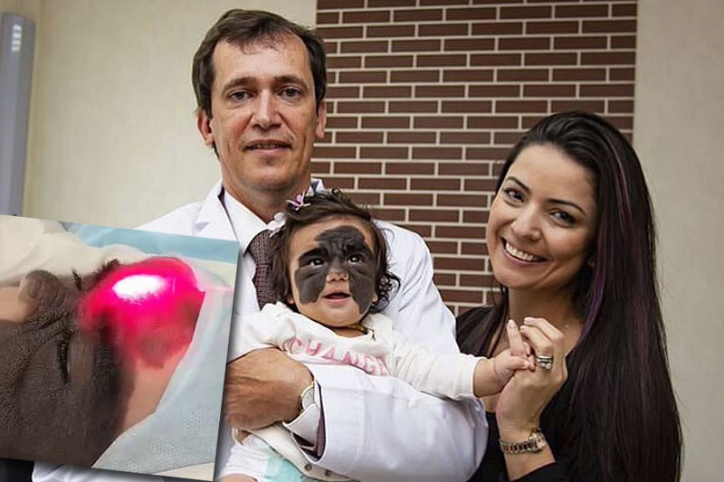 經網上流傳及媒體報導,他們最終得到一位來自俄羅斯的「神醫」波波夫 (Pavel Popov)主動聯絡,表示可以利用光動力療法為女嬰清除黑色胎記。最近第一期的手術治療終於順利完成,額頭部分的胎記已經成功清除,實在可喜可賀!光動力療法與美國其他治療方法不同,標榜無痛,醫生會先在病人皮膚內注入光敏劑,然後通過激光輻射將胎記組織消除。但是在治療結束後,皮膚上或會有少量結疤出現,但很快就會自行脫落。