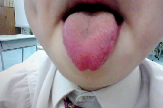 「黐脷根」是一種先天性的結構問題,是指兩側的舌頭黏在一起,成為根膜,較嚴重的個案會出現「心形脷」(見圖),普遍約有3至4%的小童有「黐脷根」問題,當中以男孩較多。