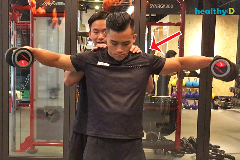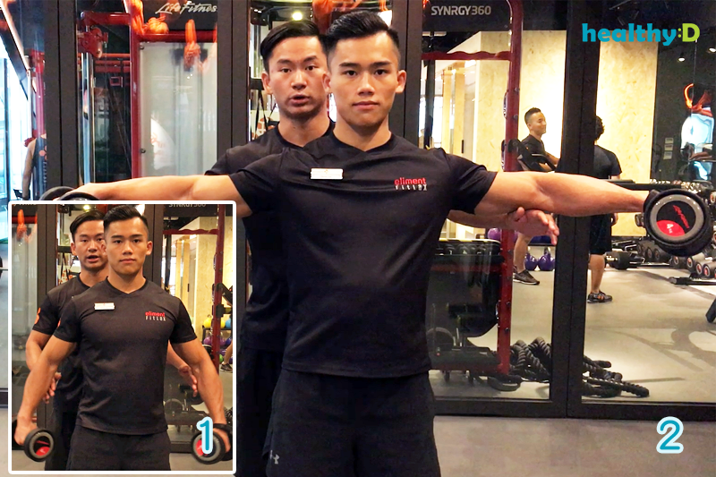 做人要有「膊頭」!健身教練Kenny教大家做一個「側平舉」動作,鍛煉肩臂肌肉。