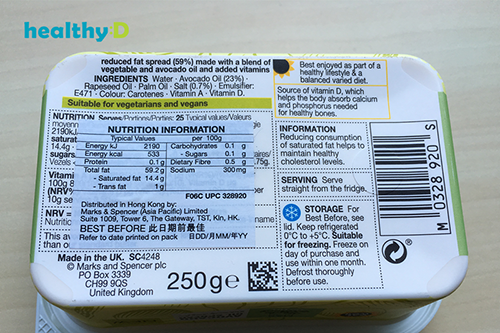 小編最近在部份馬莎分店找到牛油果牛油,用來塗麵包試食,雖然它不及牛油香,但口感幼滑,其主要成份包括牛油果油(Avocado Oil)和菜籽油(Rapeseed Oil),每100克有533卡路里、14.1克飽和脂肪,比一般牛油熱量逾700卡路里、約50克飽和脂肪較健康,熱量低逾兩成!