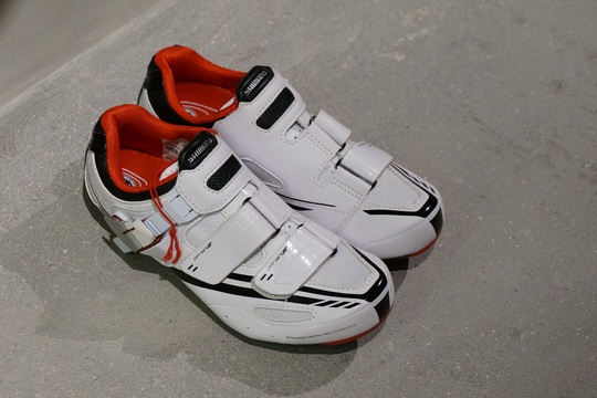 上圖:參加者需先穿上特製鞋子,用作緊扣單車腳踏。