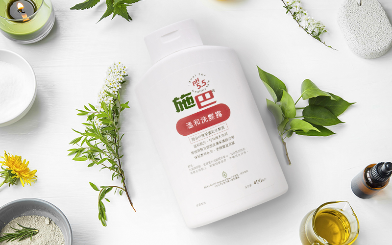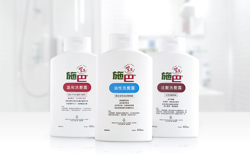 「施巴」溫和洗髮露,其酸鹼值(pH值)5.5弱酸性配方,適合頭皮易敏感的人士使用,有助預防髮幹水份流失,修護脆弱髮絲。